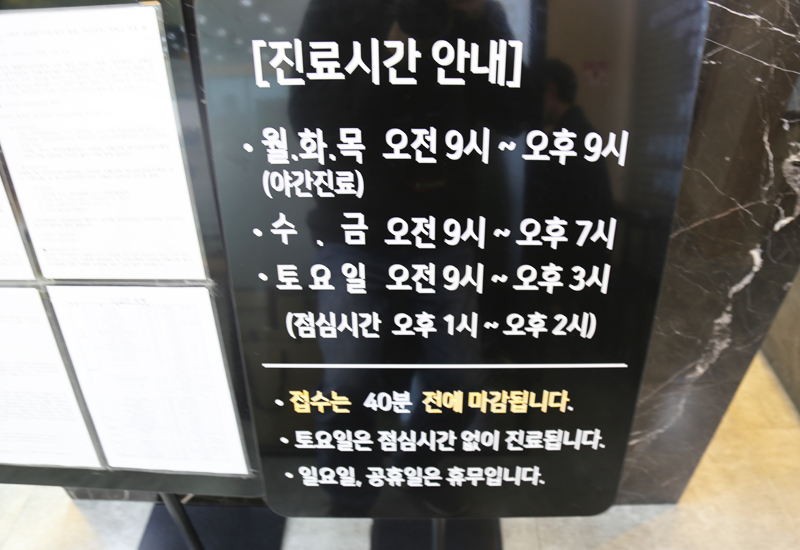 진료시간: 월/화/목 am 9:00 ~ pm 9:00 까지 -